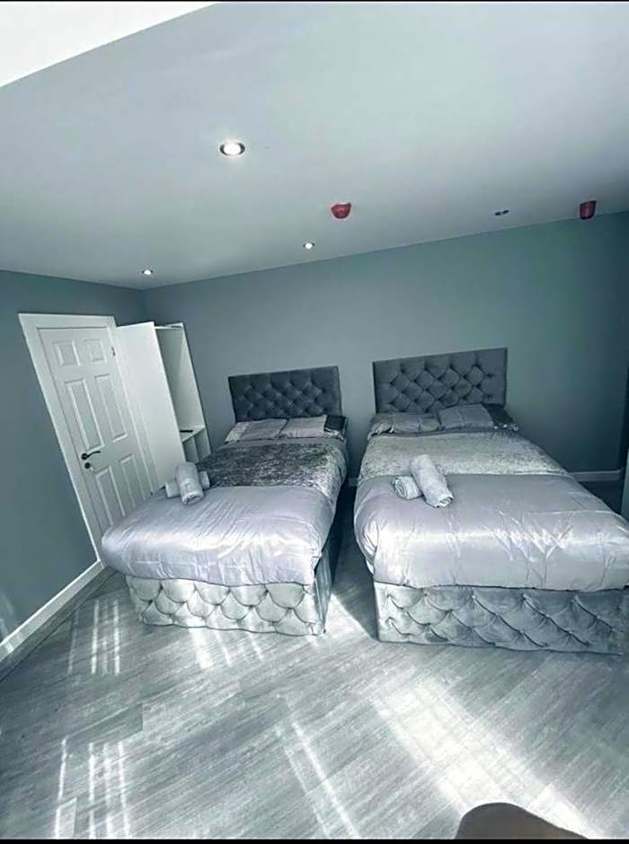 The family room features soundproof walls and an electric kettle, as well as a private bathroom boasting a shower. The unit has 3 beds.